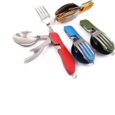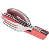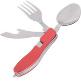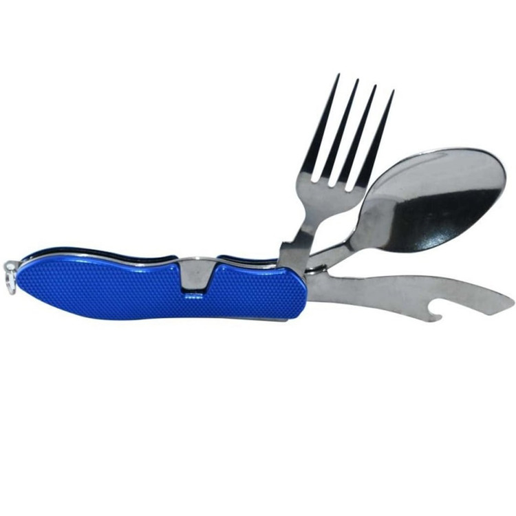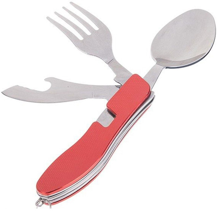 این ست سفری نیز با در نظر با در نظر گرفتن این دو ویزگی اساسی ساخته شده است. این مجموعه شامل قاشق، چنگال، درب باز کن، بطری باز کن و چاقو میباشد. شما میتوانید آنها را در ابعادی بسیار کوچک تا کرده و در داخل کیف، ساک یا کولهپشتی خود جای دهید. در انتهای این ست قاشق چنگال نیز حلقهای قرار گرفته تا بتوانید آن را به راحتی به انتهای کیف و کوله پشتی خود وصل کنید. این مجموعه چند کاره از استیل ساخته شده است. استیل آلیاژی است که پایه آن از آهن ساخته شده و کمتر از ۲ درصد کربن دارد.