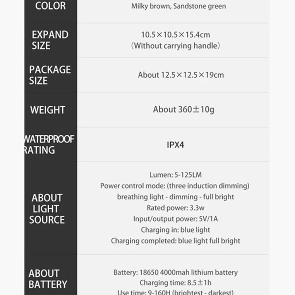 چراغ فانوسی نیچرهایک CNH22DQ009 .طراحی این چراغ کمپ منحصر بفرد بوده و با میزان نوردهی 20 الی 125 لومن دارای 3 حالت نوردهی شامل 3 حالت از کم نور تا پُر نور و همچنین ترکیب نور سفید و زرد میباشد. همچنین این چراغ دارای دستهای از جنس ABS میباشد که حمل و نقل آن را آسان کرده و میتوانید آن را آویزان کنید. مدت زمان کارکرد این چراغ فانوسی نسبت به نور مصرفی، از 9 الی 120 ساعت متغیر است.