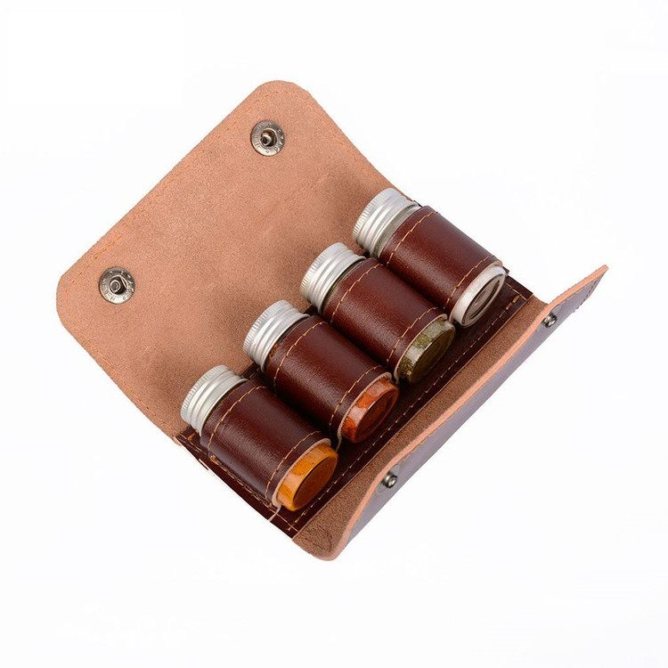 کاور چرمی این ست، علاوه بر اینکه به زیبایی ظاهری محصول میافزاید، نقش مهمی در محافظت از محفظهها دارد. این کاور از محفظههای شیشهای در برابر ضربه، افتادن و شکستن محافظت میکند و بهنوعی یک لایه ایمنی اضافی برای حمل آسانتر محصول فراهم میکند. جنس چرمی کاور نیز به آن دوام و استحکام بیشتری داده و حس لوکس بودن را به کاربر منتقل میکند.