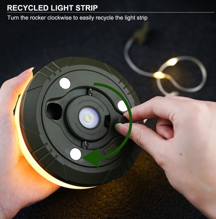 استفاده از این چراغ بسیار ساده است. کافیست برای اولین بار آن را با کابل Type-C شارژ کرده، سپس درب کناری را باز کرده و ریسه را خارج کنید. نور محیطی را با دکمه روی بدنه انتخاب کرده و از آن لذت ببرید. پس از استفاده، ریسه را مجدداً در محفظه جمع کرده و با چرخاندن دسته مخصوص، آن را مرتب کنید.