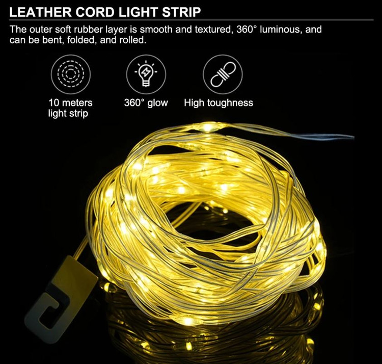 اما بخش هیجانانگیز این دستگاه، ریسه نور ۱۰ متری آن است که از ترکیب نور زرد گرم و افکتهای RGB (رنگی) بهره میبرد. با باز کردن درپوش کناری و بیرون کشیدن ریسه، محیطی جادویی و جذاب ایجاد میشود. این ریسه با چند حالت نوری از جمله نور ثابت، چشمکزن، تنفس RGB و حالت ترکیبی بهراحتی قابل تنظیم است و به فضا حس متفاوتی میدهد؛ هم برای ایجاد نور محیطی در کمپ و هم برای دکور جشن و فضای باز بسیار کارآمد است.