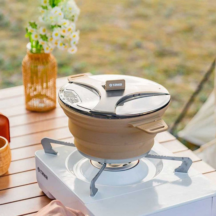 قابلمه سیلیکونی مدل CP-9011 2.5L, ساخته شده از جنس سیلیکون انعطاف پذیر و مقاوم در برابر گرما می باشد. این قابلمه دارای استاندار های لازم جهت پخت و پز و دارای گرید غذایی می باشد. همچنین به دلیل جنس سیلیکونی این قابلمه دارای قابلیت تاشو می باشد که باعث کم شدن حجم این قابلمه می شود و شما می توانید به راحتی در کوله خود قرار دهید و همراه خود در صفر داشته باشید. قابلمه سیلیکونی مدل CP-9011 2.5L برای استفاده دو تا سه نفر مناسب می باشد. دیواره سیلیکونی آن از 5 بخش تاشونده تشکیل شده که در حالت تا شده فقط 3.5 سانتی متر ارتفاع دارد. درب این قابلمه دارای آبکش است و با دسته های انعطاف پذیرش میتوان آن را به راحتی جا به جا نمود.