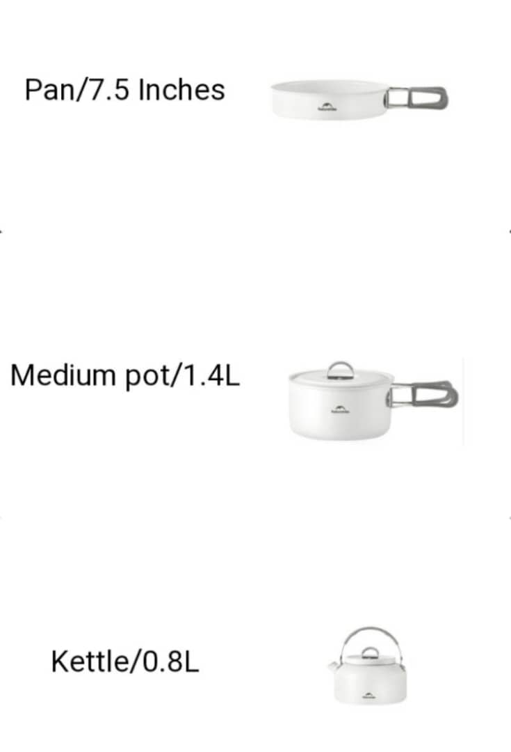 اجزای داخل ست قابلمه کوهنوردی ۳ پارچه نیچرهایک کتری 0.8 لیتری: برای جوشاندن آب، تهیه چای یا قهوه در کمپ بسیار مناسب است. قابلمه متوسط 1.4 لیتری: مناسب برای پخت غذاهای ساده مثل سوپ، برنج یا خوراک سبک در سفر. تابه 19 سانتیمتری : برای سرخ کردن تخممرغ، سبزیجات یا گوشت بسیار کاربردی است.