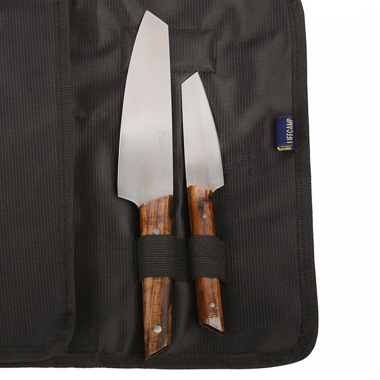 مجموعه چاقو لایف کمپ ، کلکسیونی فوق العاده و جذاب برای آشپز های حرفه ای نیز هست و مجموعا دارای 3 تکه، شامل 2 کارد و 1 تخته برش چوبی از جنس فینگر جویند راش و 1 کیف حمل زیپی می شود. ابعاد این مجموعه 4×17×29.5 سانتی متر و وزن آن 700 گرم است.