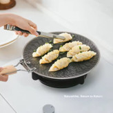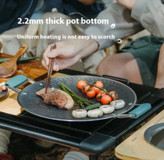 سطح داخلی تابه با طرح لانهزنبوری ساخته شده تا حرارت به شکل یکنواخت پخش شود و مواد غذایی نسوزند یا به کف نچسبند. این طراحی باعث میشود شستوشوی تابه سریع و بدون دردسر انجام شود. تابه قابلیت استفاده روی انواع اجاقهای سفری مانند گاز، زغال یا الکل را دارد و برای پخت انواع غذاها در فضای باز مناسب است.
