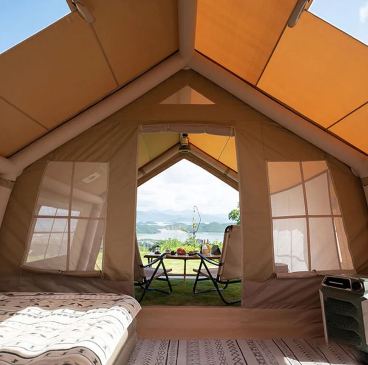نصب چادر به کمک پمپ باد مخصوص سریع و راحت است و به هیچ ابزاری غیر از آن نیاز نیست. همراه چادر، میخهای فلزی، طناب، پرده و کیسه حمل قرار دارد که همه موارد لازم برای استفاده کامل و ایمن را پوشش میدهد.