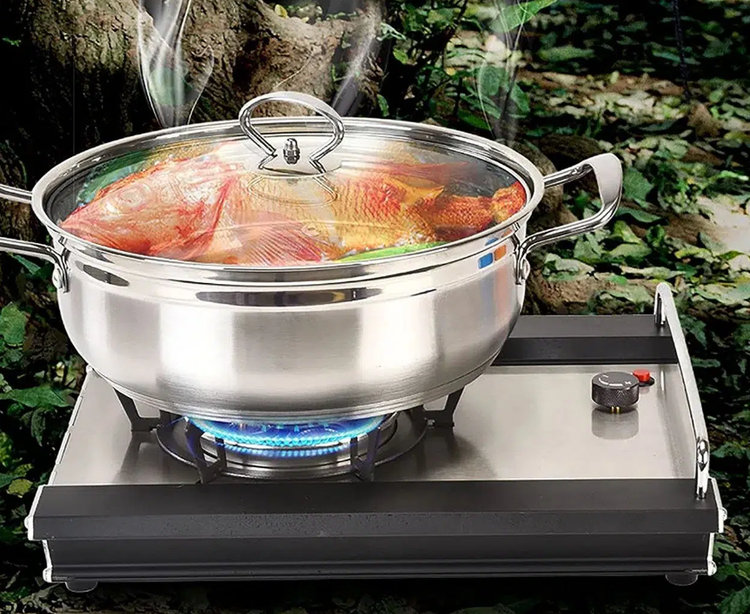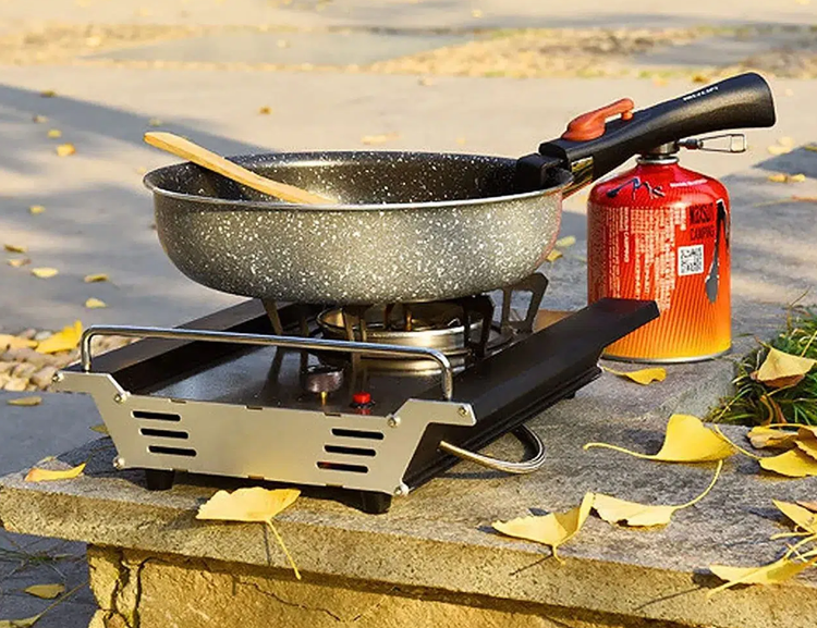 شعله این اجاق گاز پرتابل دارای سه مشعل حرارتی با میله پیش گرم می باشد که امکان تنظیم حرارت را به کاربر می دهد. همچنین، براکت ضد لغزشی نیز بر روی این اجاق نصب شده است که امکان استفاده آسان و بدون نگرانی از لغزش اجاق را فراهم می کند.