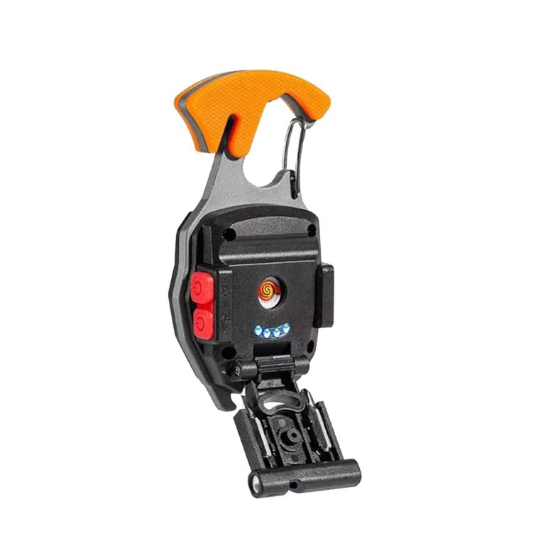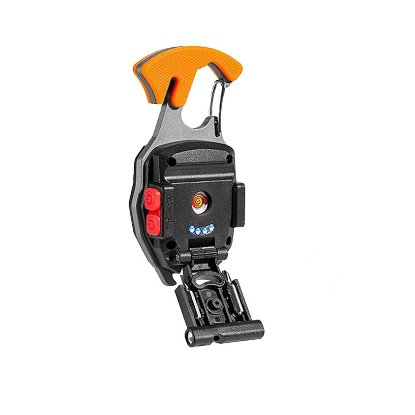 در قسمت بالای چراغ قوه یک تیغ جهت بریدن طناب دارد.