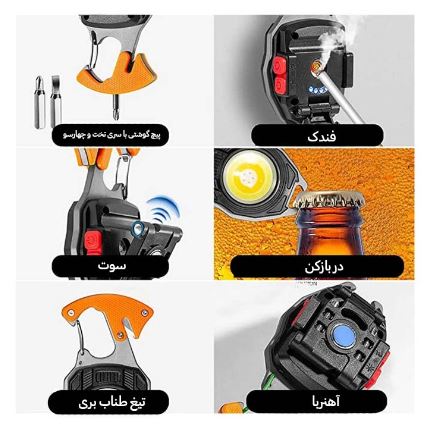 قسمت پشت چراغ قوه هم یک آهنربا قرار دارد که هنگام کار می توانید روی سطوح فلزی قرار دهید.